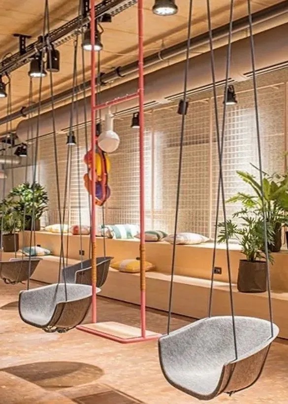 空間以明亮的粉彩和摩登風(fēng)格將顧客帶入加利福尼亞的風(fēng)情世界,還通過一系列不同尋常的材料組合,為顧客提供不一樣觸覺、視覺體驗(yàn)的潮酷餐飲空間。顧客可以選擇坐在落地窗前邊品嘗美食,邊欣賞對面動(dòng)物園的猴山;也可以選擇以鳥籠為靈感設(shè)計(jì)的沙發(fā)區(qū),或是以階梯座的秋千林立的休閑區(qū)等。