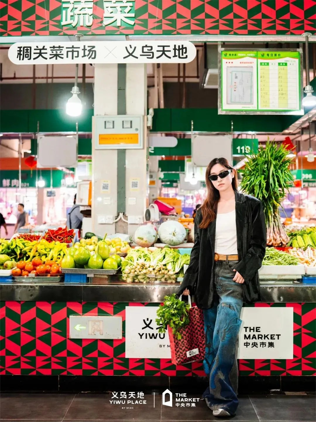 為預(yù)熱開業(yè),義烏天地攜手稠關(guān)菜市場,于7月初精心策劃了一場跨界聯(lián)動,將現(xiàn)代時尚與傳統(tǒng)市井完美融合。