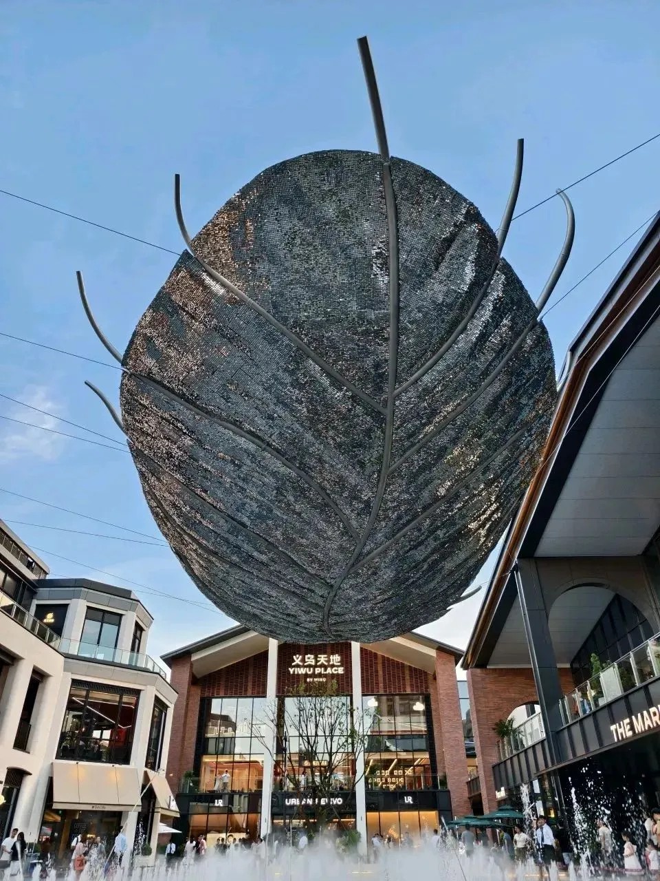 “雞毛換糖”這一義烏獨有的城市精神,在義烏天地項目中得到了巧妙的傳承與創(chuàng)新。藝術(shù)家蔡雅玲創(chuàng)作的公共藝術(shù)裝置,以羽毛和糖紙為媒介,向義烏這座城市致以崇高的敬意,也為空間增添了幾分詩意與浪漫。