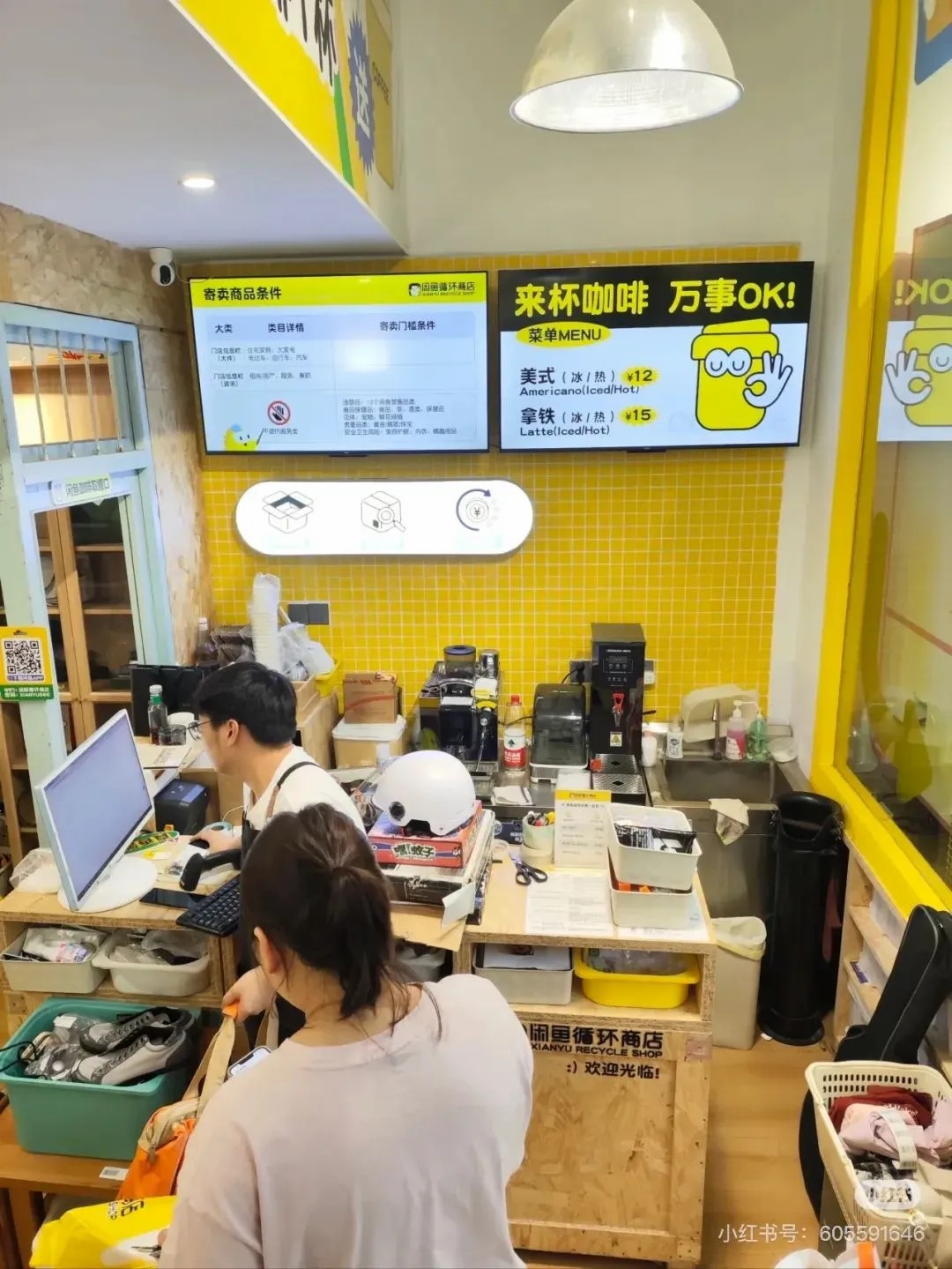 香港慢生活環(huán)保店Slowood,在保證質(zhì)量的前提下,店內(nèi)的所有商品去除一切包裝,或部分產(chǎn)品只采用環(huán)保的可降解材料,沒有任何塑料和紙張的浪費;位于杭州絲聯(lián)166文創(chuàng)園的閑魚循環(huán)商店,門店以閑魚APP標志性的黃色為主色調(diào),門頭上標注了“寄賣/二手/咖啡”字樣,門店屬性十分突出,門口還擺放了露營椅供顧客休息。
