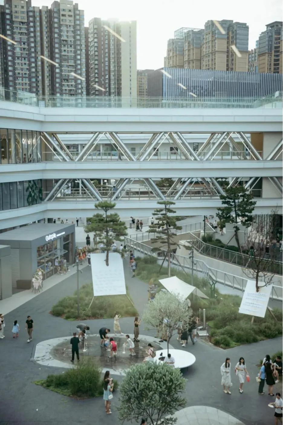 通過遠山觀景臺、微風草坪、滑板公園等場景化設(shè)計,海淀大悅城將商業(yè)空間與山系環(huán)境無縫融合,營造出“城市微度假”的理想場景,消費者不僅可以在此消費社交,還能參與露營、騎行、滑板等活動,在繁忙的都市生活中感受自然的松弛與治愈。