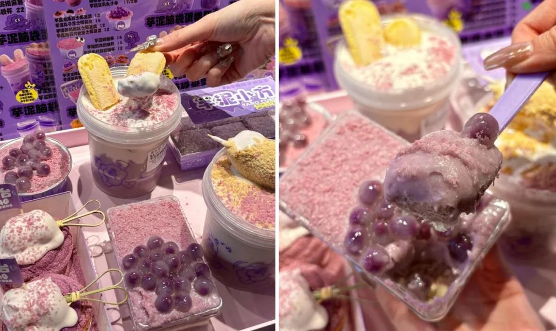 自成立以來,糖泡芋泥腦袋已經(jīng)在國內(nèi)外多個城市開設(shè)了50家門店。通過聚焦芋泥單品,開發(fā)出43款衍生品,包括手工制作的芋泥蛋糕腦袋杯、芒果芋泥冰、芋泥丸子蛋撻等,深受消費(fèi)者喜愛。此外,該品牌還注重食材的品質(zhì),例如種植200畝荔浦芋頭,確保從源頭把控品質(zhì)。糖泡芋泥腦袋的運(yùn)營策略實現(xiàn)了垂直品類的供應(yīng)鏈穿透。