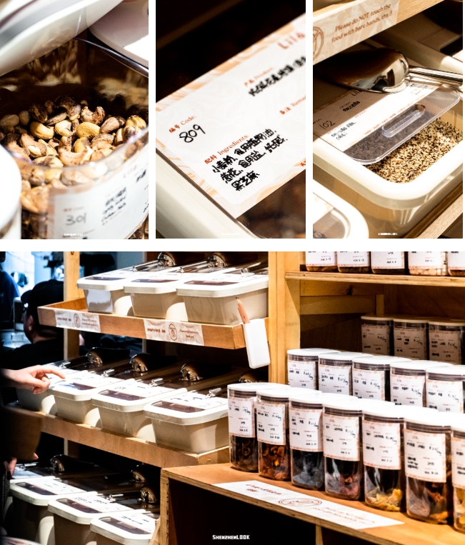 品牌整體適合喜歡搗鼓酸奶碗這類輕食的消費(fèi)者,品類多,逛一次基本就能把材料買齊。從店名也能看出,Lila推崇零浪費(fèi)、減碳等環(huán)保理念,因此來這里購物,是需要自帶容器。按需取量,稱重結(jié)算。