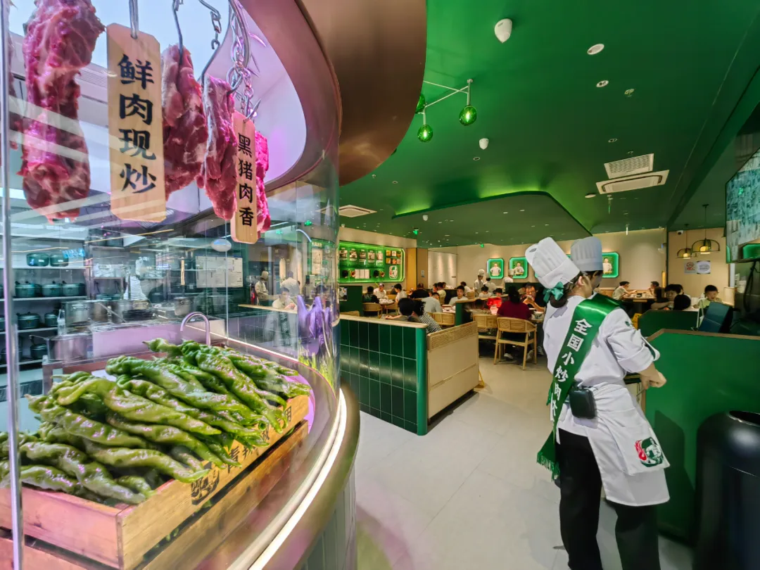 在用餐體驗上,費(fèi)大廚辣椒炒肉現(xiàn)炒現(xiàn)做,拒絕預(yù)制菜,每家店配備15名大廚,每人僅負(fù)責(zé)2-3道菜,每鍋僅炒兩份;還首創(chuàng)章丘手工鐵鍋+景德鎮(zhèn)土灶底座保持菜品溫度,翻臺率直線提升。為優(yōu)化客戶體驗,費(fèi)大廚創(chuàng)新性地將新鮮現(xiàn)煮小鍋米飯、大王冰檸檬茶與辣椒炒肉強(qiáng)勢捆綁。