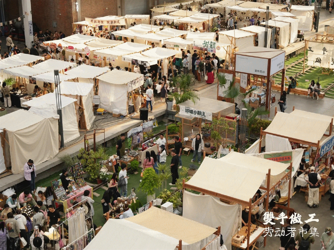 除了戲劇演出,上生·新所公共空間五一期間也舉辦了以“松弛療愈”為主題的手作市集活動,60+原創(chuàng)設(shè)計(jì)攤主為大家?guī)硪粓龇淳懑熡凳屑?,向市民游客傳遞各自的“慢生活”哲學(xué),讓我們找到都市煙火氣、找到人與人單純善意的社交,讓藝術(shù)浸潤生活,成為城市文化能量的聚集地。